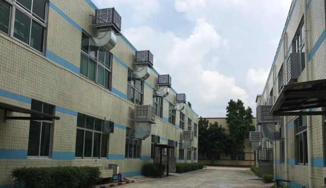 服裝廠在生產(chǎn)加工服裝過程中,由于針車設(shè)備馬達(dá)散熱擴(kuò)散到車間空氣中,工廠結(jié)構(gòu)裝修隔墻自然通風(fēng)不良,而且因?yàn)橄募臼彝怅柟鈴?qiáng)烈照射產(chǎn)生的高溫等,導(dǎo)致服裝廠車間環(huán)境溫度不斷升高,尤其是衣服布料中還揮發(fā)了一些含甲醛的氣體,將這些有害空氣吸入員工體內(nèi),逐漸出現(xiàn)抵抗力、免疫力下降,甚至出現(xiàn)白血病、癌癥等職業(yè)病。這里小編介紹兩種方案解決上述問題。