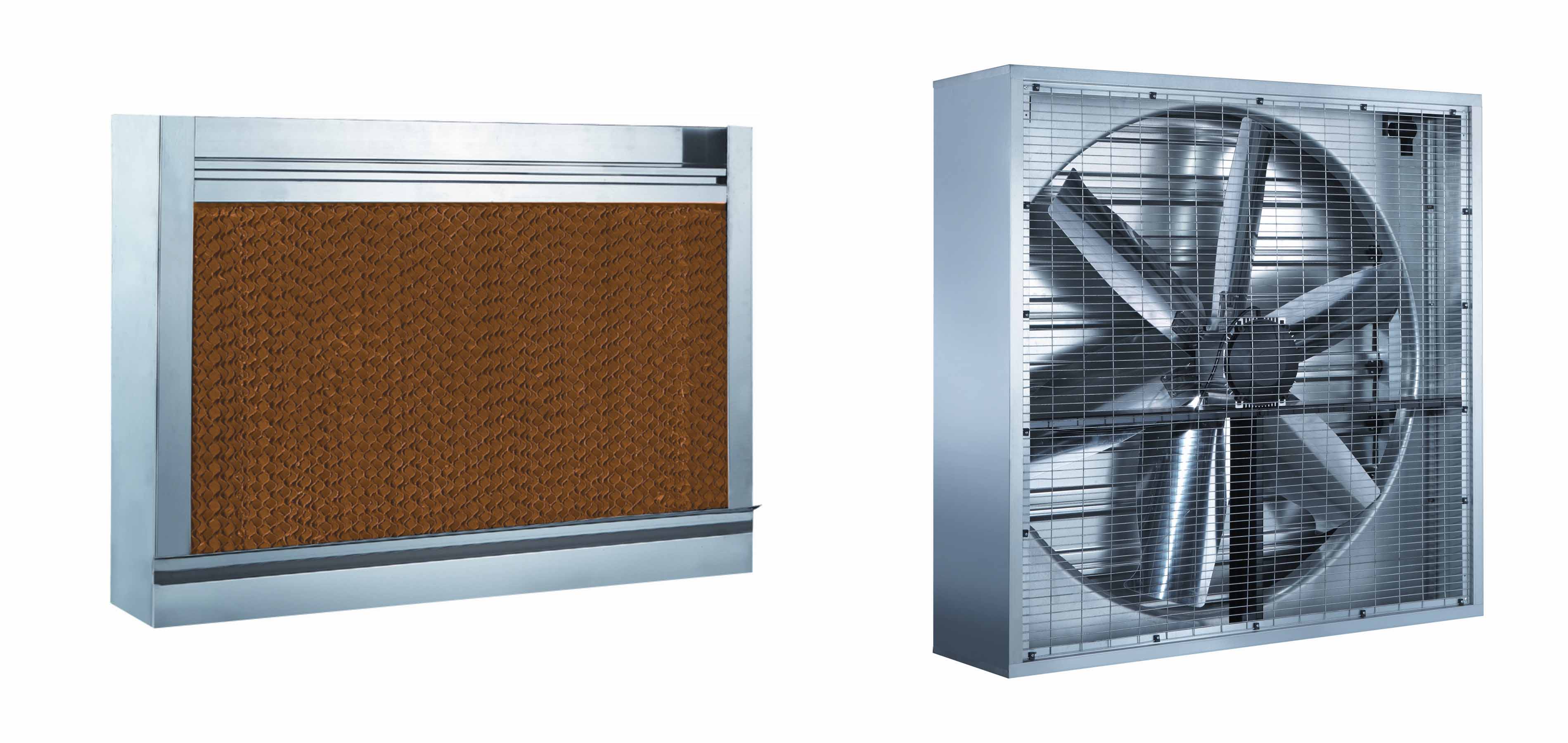 3.水簾降溫:水簾的原理是用大功率的風(fēng)機(jī)把外面的風(fēng)吹過濕簾,通過水蒸發(fā)吸熱來(lái)降溫的,優(yōu)點(diǎn)就是適合大面積降溫。缺點(diǎn)是,大面積降溫要的風(fēng)機(jī)功率很大,一般要上十幾個(gè)千瓦,離風(fēng)機(jī)比較遠(yuǎn)的地方降溫效果很差;